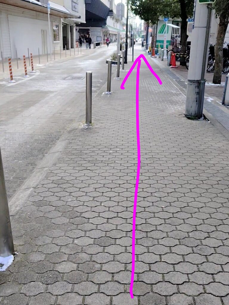 かすれた(!?)横断歩道を渡ってから左へまっすぐ歩きます。