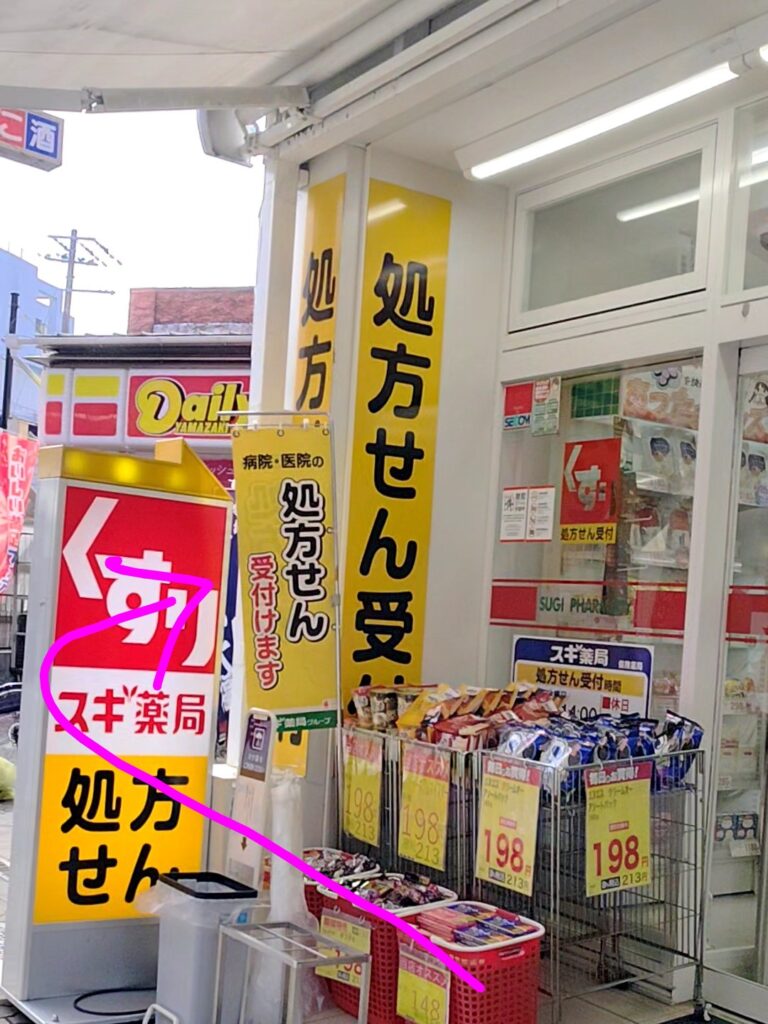 ⑥スギ薬局を越えるとデイリーやまざきがあります。(同じビルです)